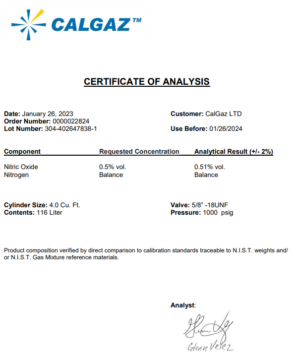 홈페이지를 통해 다운로드 받을 수 있는 시험성적서 견본입니다. 시험을 진행한 일자와 유효기한(Use Before) 그리고 해당 시험성적서가 적용되는 Lot Number가 기재되어 공급된 가스를 믿고 사용하실 수 있습니다.