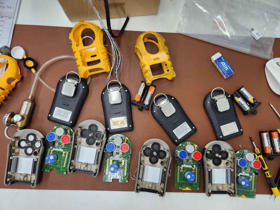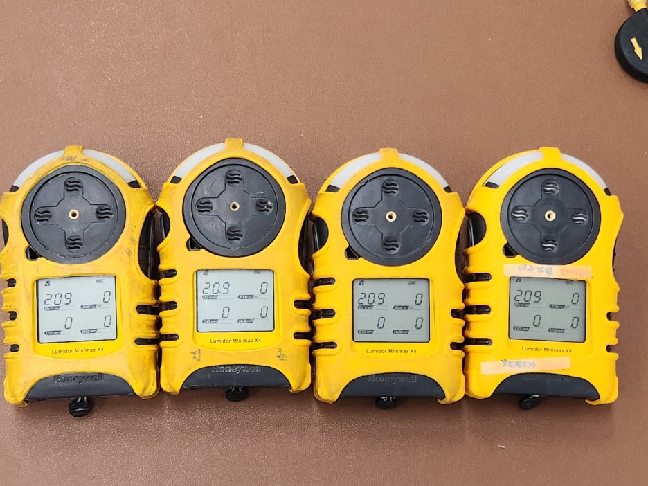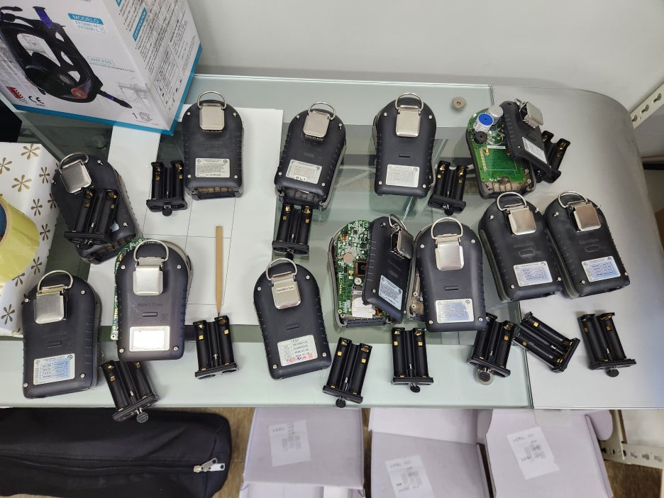 저희 고객사 중 하나인 대우건설에서 금번에 의뢰해주신 Minimax X4 의 모습입니다. 사진에 있는 4개의 기기 모두 전년도 10월에 교정이 진행되었고 산소센서 또한 모두 교체되었습니다. 1년이 되기 전에 보내주셨기 때문에 산소센서 이상은 없을 것이라고 예상 되었으나 고객사에서 사용 중 문제가 되면 안되므로 모든 제품을 분해하여 산소센서 이상유무를 정밀검사 하였습니다.