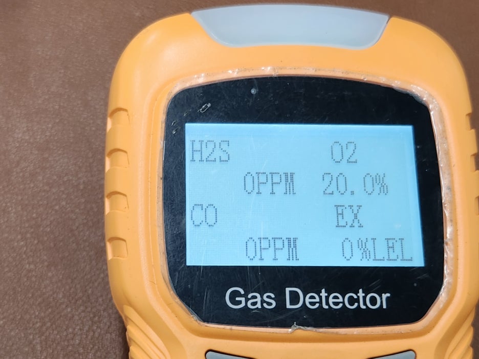 산소센서를 교체 한 직후에는 센서 수치가 정상농도인 20.9%가 아닌 20.0%를 가리키고 있었습니다. 산소센서 뿐만아니라 CO, H2S, LEL 모두를 교정하여 평상시 0ppm/%, 외부 교정가스 주입시 정상농도를 표시하도록 조치했습니다.