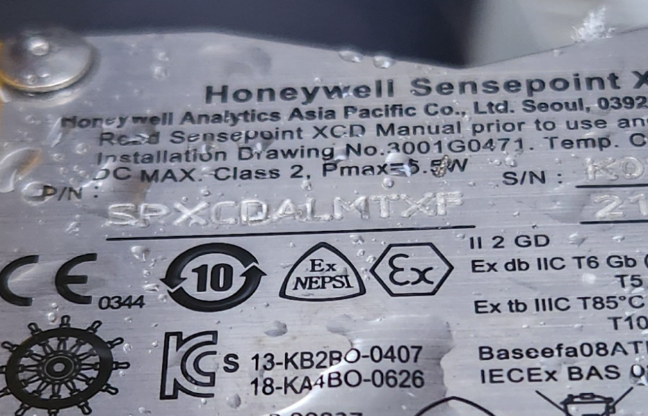 고정형 가스측정기는 특성상 제품을 수거하여 교정을 진행하는 것이 매우 어렵습니다. 그래서 거리에 따른 차등 출장비용을 적용하여 방문 후 교정을 진행하고 있습니다. 이때 필수적으로 필요한 정보는 기기 상태와 측정기 화면에 보이는 에러메세지 그리고 기기의 모델정보입니다. 사진에서 P/N 으로 표시되는 것이 파트넘버, 즉 모델정보입니다. 해당 제품은 SPXCDALMTXF 로서, 구글에서 해당제품을 검색해 보면 아래와 같은 제품 정보를 확인할 수 있습니다. "SPXCDALMTXF Sensepoint XCD Transmitter, Flam and IR Tx" 본 정보를 통해서 해당제품은 LEL 센서가 장착된 기기임을 한번 더 확인할 수 있습니다.